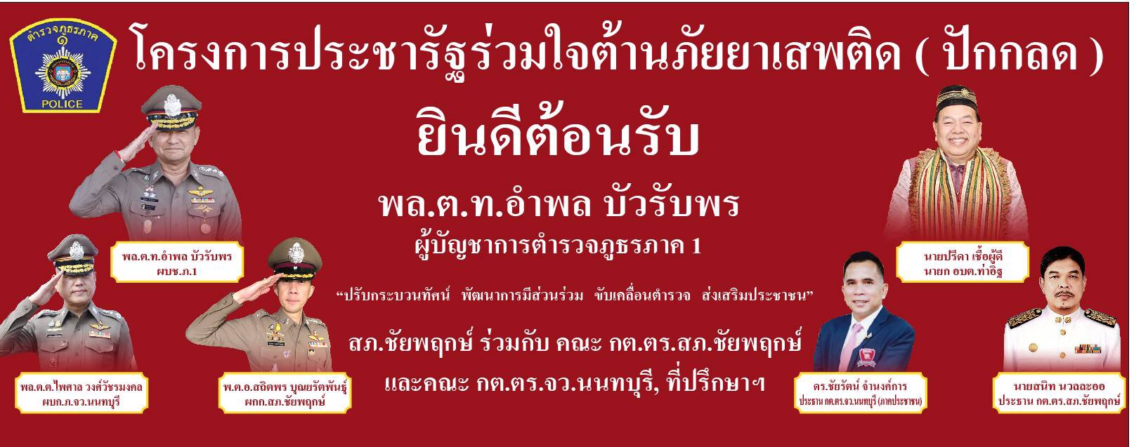 พร้อม ดร.ชัยรัตน์ จำนงค์การ ประธาน กต.ตร.จว.นนทบุรี (ภาคประชาชน),นายทวีศักดิ์ สุทิน,กต.ตร.ภ.จว.นนทบุรีและที่ปรึกษาฯ ,ที่ปรึกษาภาค 1 ,นายสมชัย ตั้งกิจงามวงศ์ ประธานกต.ตร.สภ.รัตนาธิเบศน์พร้อม กต.ตร.สภ.รัตนาธิเบศร์ , คณะกต.ตร.จว.นนทบุรีวงดุริยางค์ตำรวจ แขกผู้มีเกียรติทุกท่าน