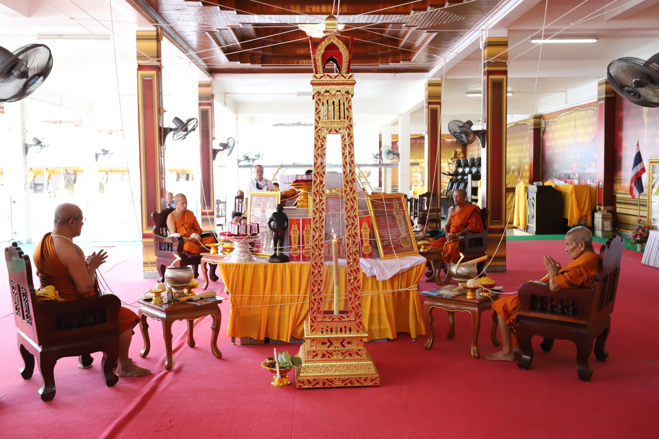 จึงได้เชิญ พราหมณ์ภีษม รังสิพราหมณกุล หัวหน้าพราหมณ์ สังกัดกองพระราชพิธี สำนักพระราชวัง , พระครูสุริยาเทเวศร์ พระครูพราหมณ์จากสำนักพราหม์พระราชครูในสำนักพระราชวัง ในการทำพิธีไหว้ศาลพระภูมิ , ศาลตายาย และ พระราชนนันทมุนี เจ้าคณะจังหวัดนนทบุรี เป็นประธานฝ่ายสงฆ์ ในการทำบุญตักบาตรเพื่อเป็นเกียรติและสวัสดิมงคลแก่การปฏิบัติราชการของข้าราชการตำรวจภูธรรัตนาธิเบศร์ต่อไป